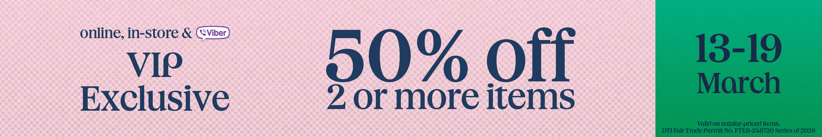 VIP Exclusive: 50% off on 2 or more items