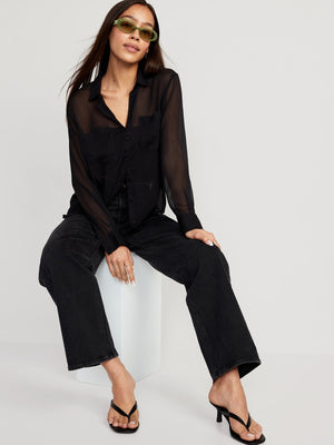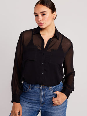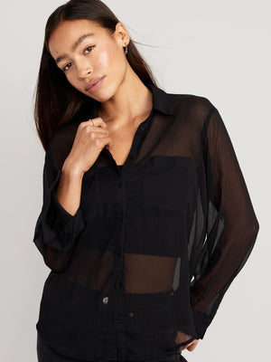 • Soft, sheer chiffon is made for layering with your favorite tank.