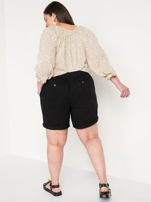 • Elasticized high-rise waistband, with button closure and built-in belt loops.
