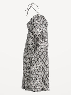 • Maternity sleeveless midi dress hits mid-calf.