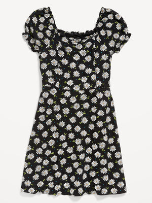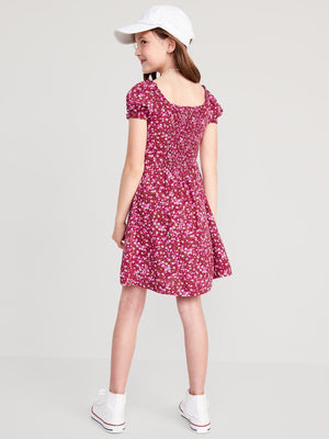 Printed Puff-Sleeve Fit & Flare Dress for Girls
