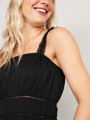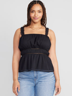 • Women's cami top hits below waist.