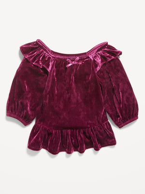 • ruffled shoulders and hem
