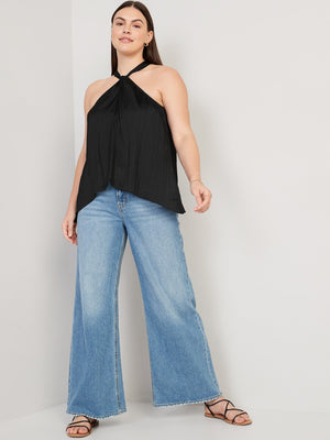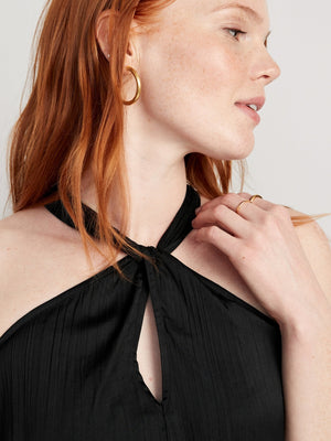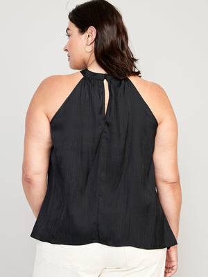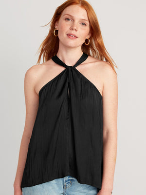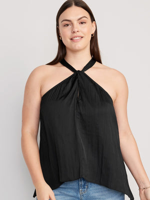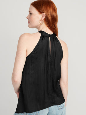 • Women's sleeveless top hits at hip.